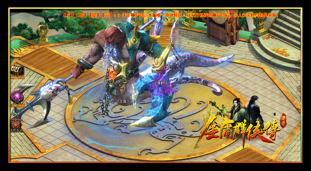 友情提示:9 关于鞭尸符,本服唯一原创特色,玩家打怪获得鞭尸符后,杀人和杀怪均有几率使怪物人物,死亡2次。也就是爆2次装备。一个好的鞭尸符是你玩转金庸群侠传不可缺少的重要宝贝!